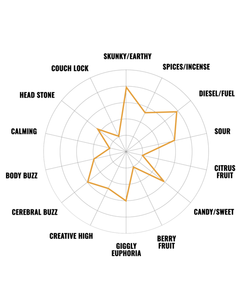 | Terpene | Caryophyllene, Limonene, Myrcene |