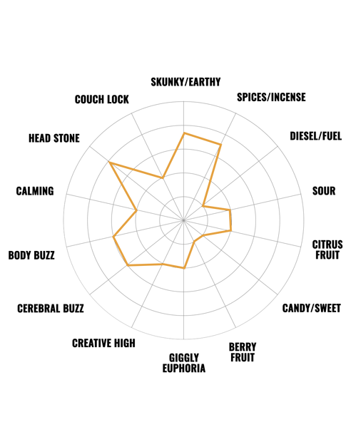 The high is relaxing without being overly sedating, and the flavor profile lives up to its name, with a tangy sourness and fruity undertones. This one is definitely a contender for the best hybrid strain out there, even 5 years after being awarded the converted Leafly 'Strain of the Year' for 2019.