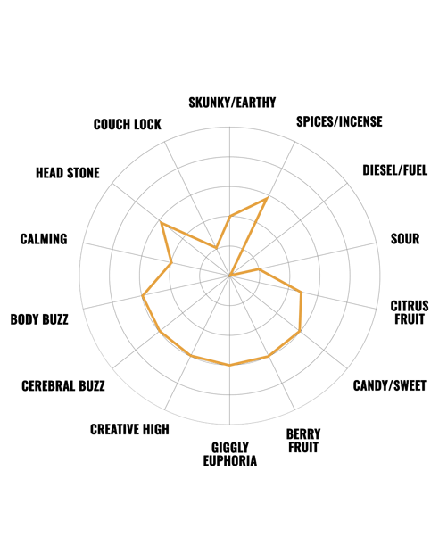 | Terpene | Limonene, Myrcene, Caryophyllene |