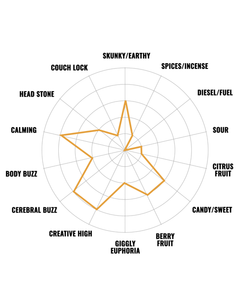 | Terpene | Myrcene, Caryophyllene, Pinene |