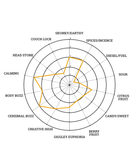 The THC percentage ranges between 20-25%, making it a pretty potent strain. Indoor hydroponically grown plants have the best chance at hitting (or even clearing) the 25% mark.