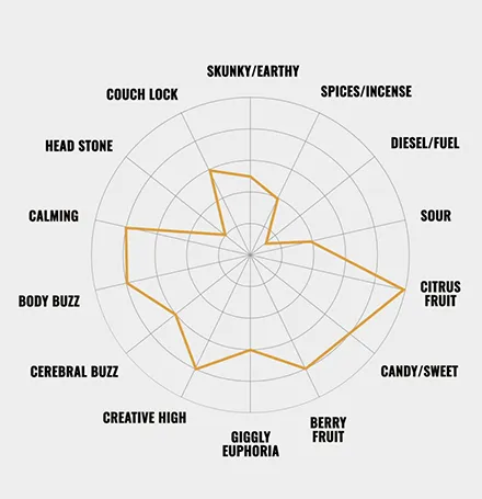 • Flavour and Terpenes: An overview of the strain’s sweet, citrusy aroma with dominant terpenes.