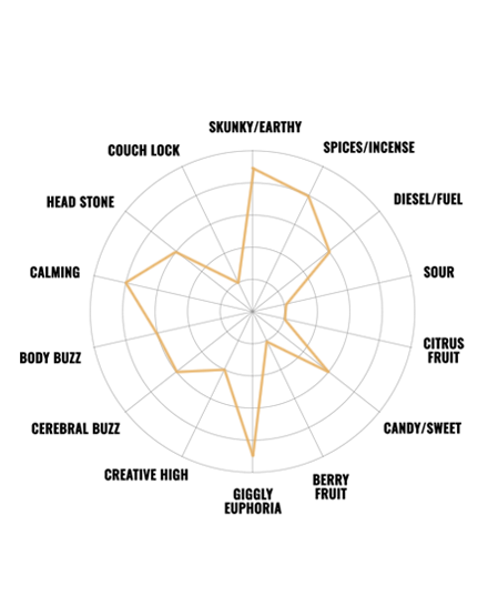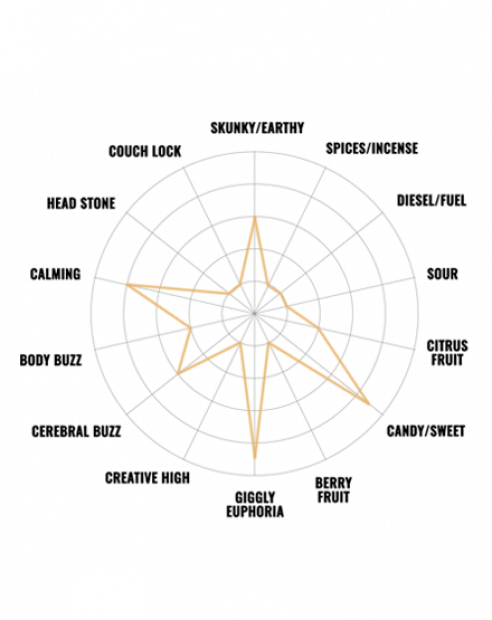 | Terpene | Beta-Caryophyllene, Myrcene, Limonene |